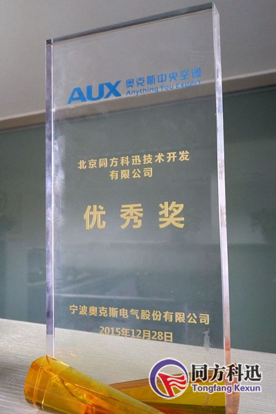 會上,北京同方科迅技術開發有限公司15年度銷售業績得到了奧克斯的充分認可,獲得了現場頒發的年度優秀獎獎杯。